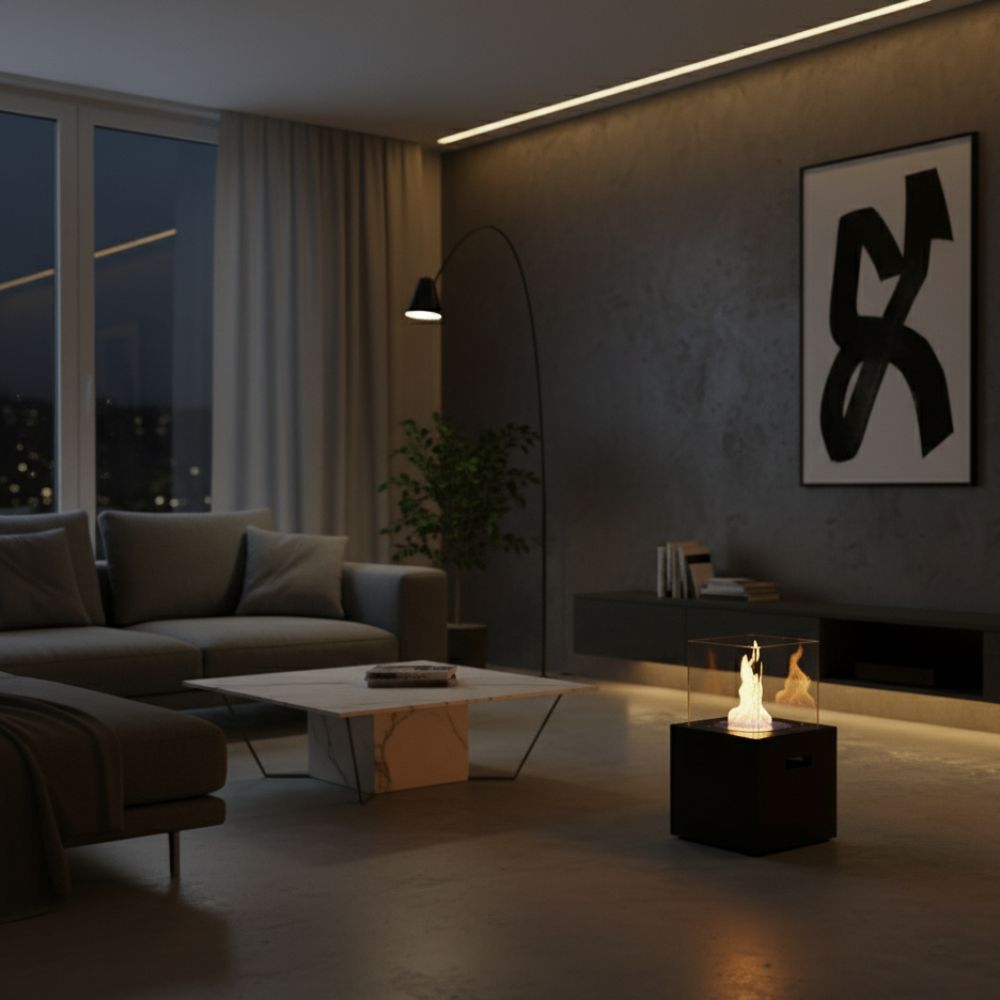 Biokominek TOWER MINI kratki czarny stolik kominek wolnostojący