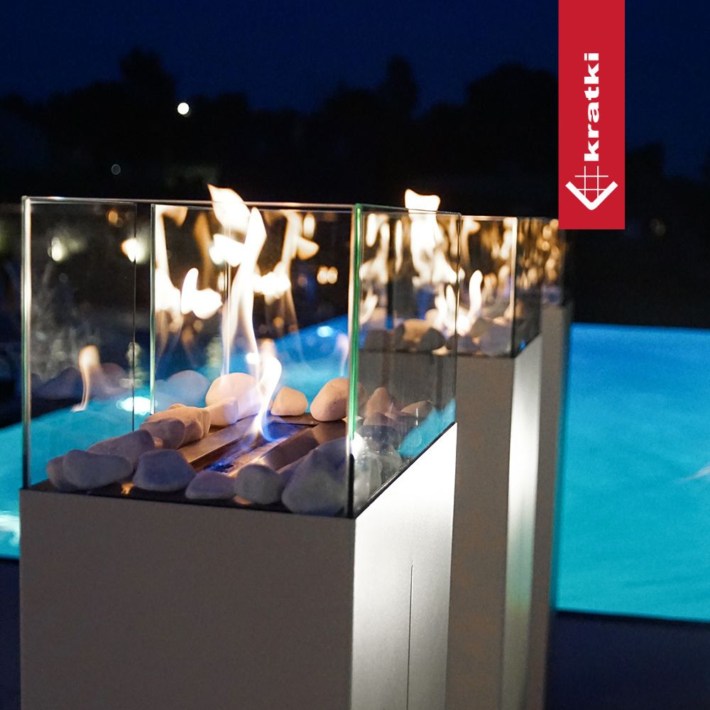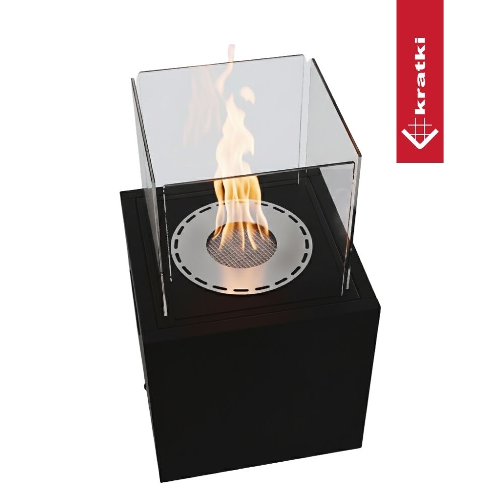 Biokominek TOWER MINI marki KRATKI to kompaktowa i stabilna konstrukcja wykonana z wysokiej jakości stali, malowanej proszkowo na elegancki, czarny mat. Jego sercem jest pojemnik na biopaliwo ze stali nierdzewnej, wyposażony we wkład chłonny, który zabezpiecza przed rozlaniem paliwa i zmniejsza jego zużycie. Całość uzupełniają cztery szyby ze szkła hartowanego, które nie tylko chronią płomień, ale i efektownie go eksponują, zapewniając przy tym bezpieczeństwo użytkowania. Biokominek posiada uchwyty do przenoszenia, co sprawia, że jest mobilny i możemy ustawić go tam, gdzie potrzebujemy. Idealnie sprawdzi się na tarasie, lub balkonie.