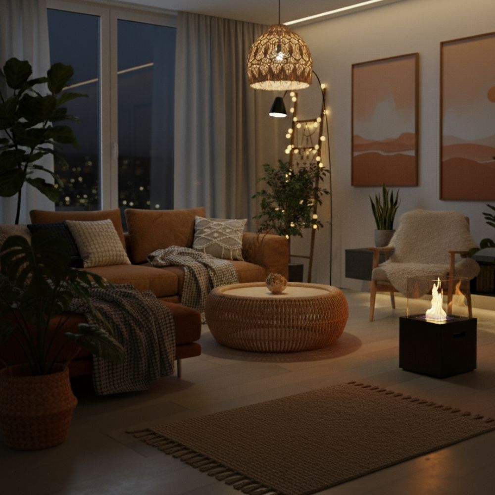 Biokominek inaczej wygląda z każdymi elementami dekoracyjnymi, co daje możliwość zmiany aranżacji.