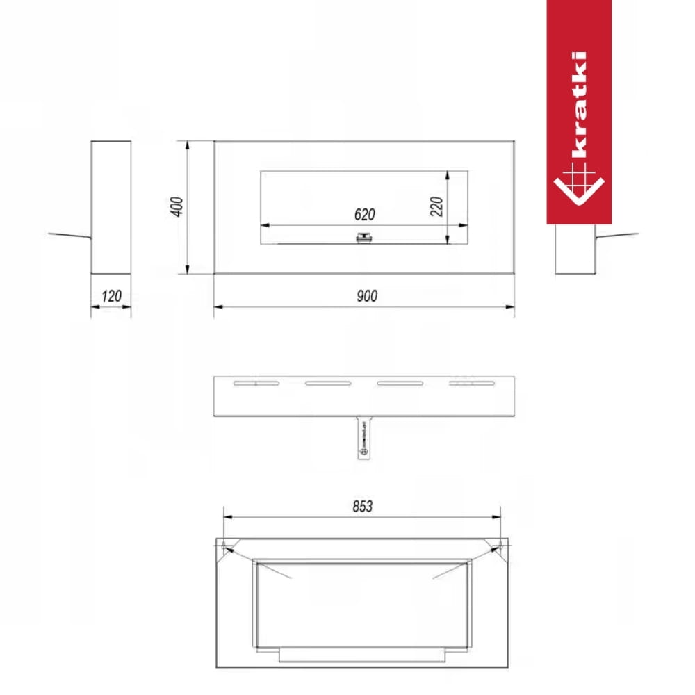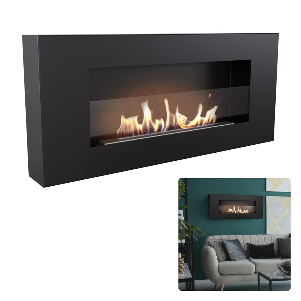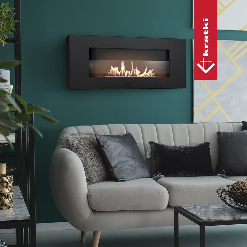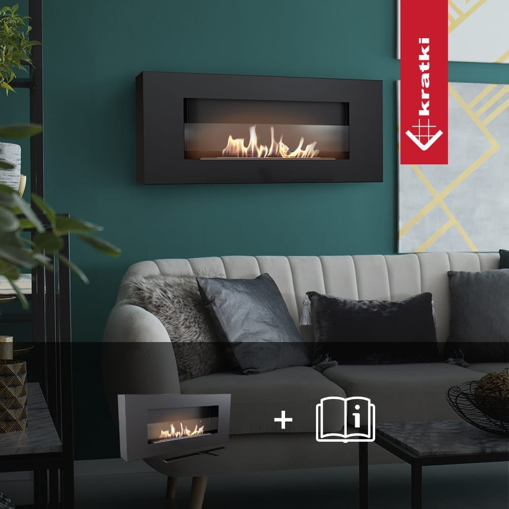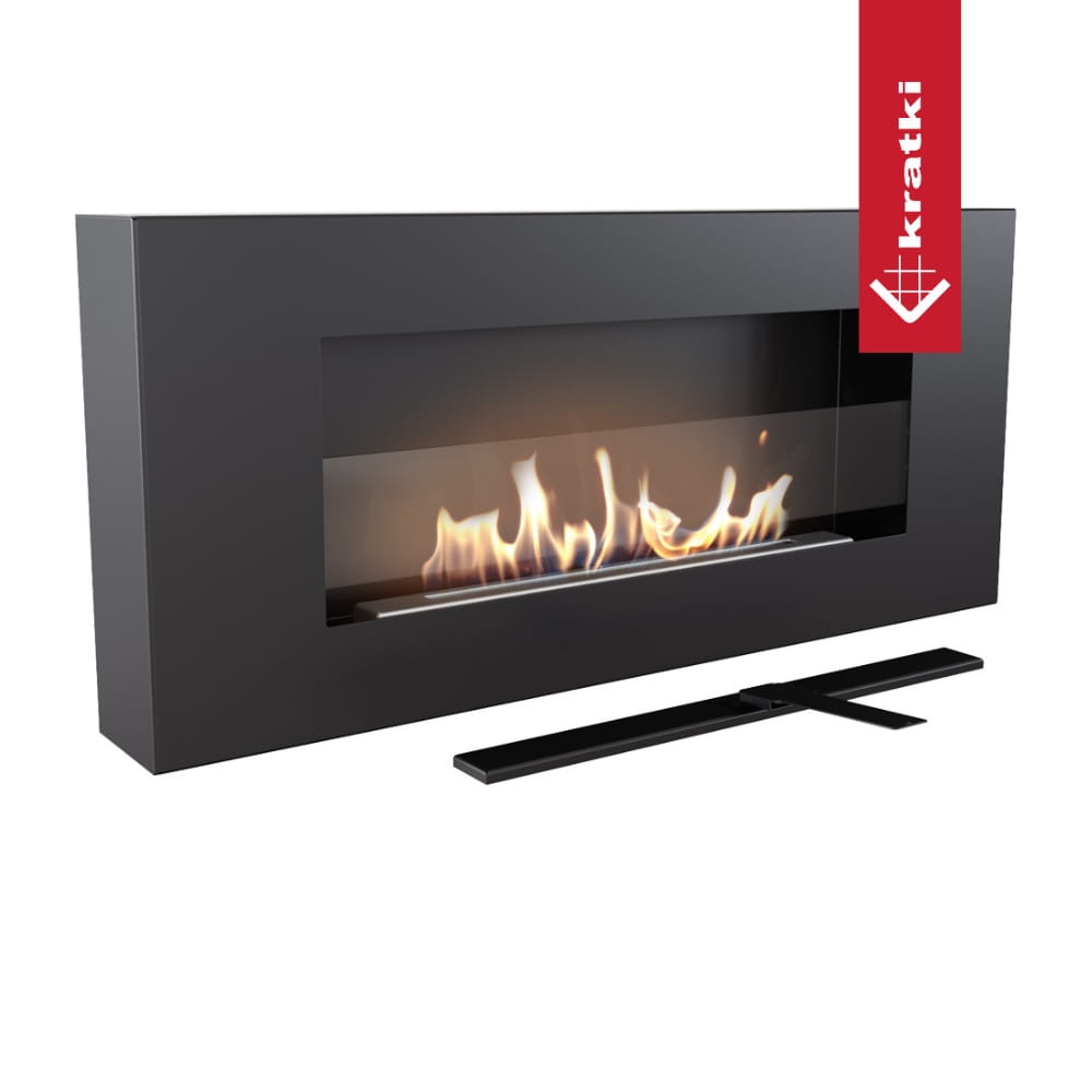 Biokominek wiszący DELTA FLAT TÜV 900x400 czarny z szybą kominek biokominki