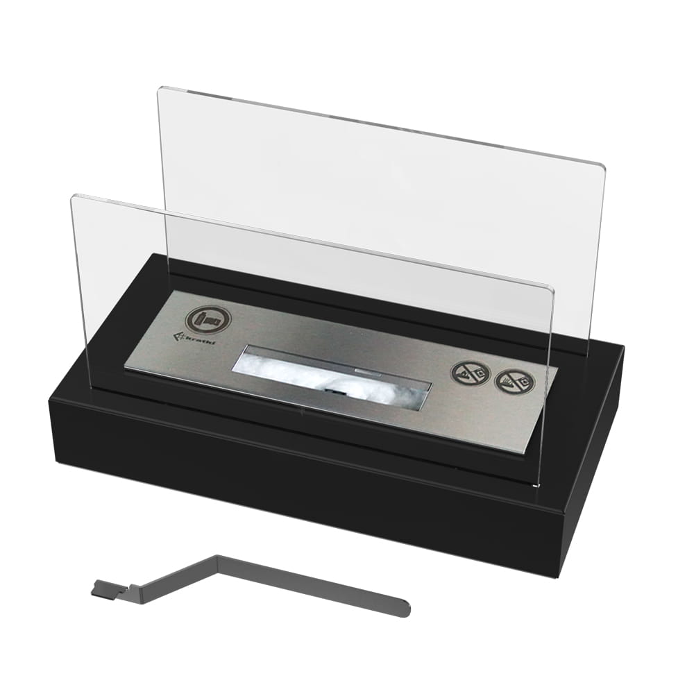 Biokominek wolnostojący GALINA certyfikat TÜV KRATKI czarny z szybą to niewielki bio kominek o rozmiarach 18x35x22 cm, który możesz postawić tam, gdzie chcesz. Idealnie nadaje się do mieszkań, a także na taras, balkon, czy do ogrodu. Biokominek GALINA posiada niemiecki certyfikat bezpieczeństwa TÜV.