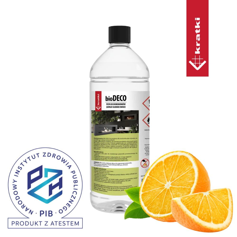 Biopaliwo płyn do biokominków BIO-DECO słodkie owoce 1l paliwo atestowane
