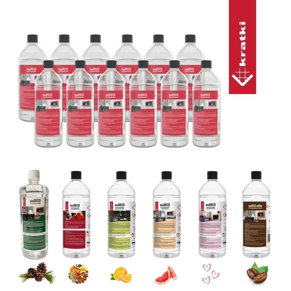 BIO-DECO dostępne w naszej ofercie to rodzaj bezwonnego biopaliwa oraz 6 pięknych zapachów, dzięki którym biokominek oprócz funkcji wizualnej i grzewczej spełnia funkcję aromaterapii pomieszczenia i napełnia go Twoim ulubionym zapachem. Słodkie owoce, romantyczny, lub grejpfrut to świeże nietuzinkowe nuty zapachowe, a na czas jesienno zimowy kawa, leśny lub grzane wino stworzą niepowtarzalną atmosferę w pomieszczeniu z biokominkiem.