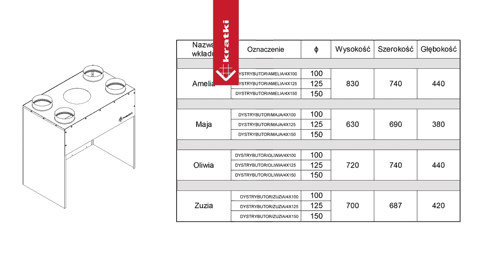 Kod produktu: DYSTRYBUTOR/AMELIA/4X150
