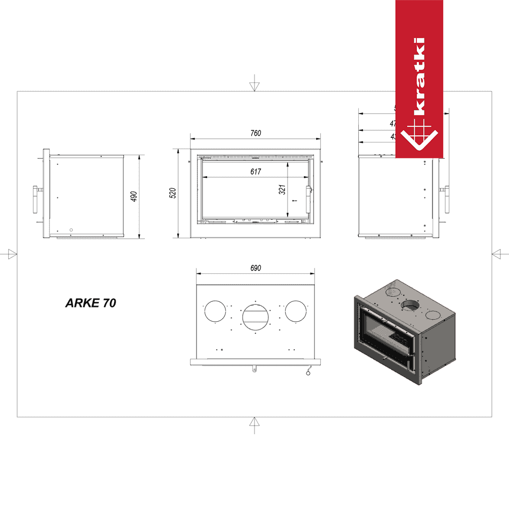 Kaseta kominkowa KRATKI ARKE 70 8 kW Ø 150 czarne wyłożenie