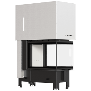 Szyba umieszczona z 3 stron kominka maksymalnie zwiększa wizję ognia i nadaje formie nowoczesności. Tego typu kominek jest często wybierany w przypadku otwartych pomieszczeń, w których łączone są różne przestrzenie, np. salon z jadalnią.