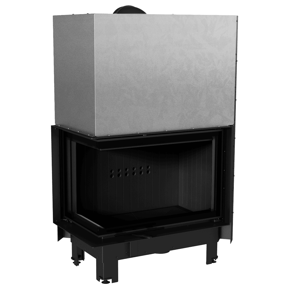 Kominek powietrzny KRATKI MBA lewy BS 17 kW Ø 200 Gilotyna gięta szyba czarne wyłożenie