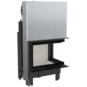 Przeszklenie z dwóch stron zwiększa wizję ognia i doskonale wpisuje się w stylistykę nowoczesnych wnętrz. Tego typu kominek jest często wybierany w przypadku otwartych pomieszczeń, w których łączone są różne przestrzenie, np. salon z jadalnią.