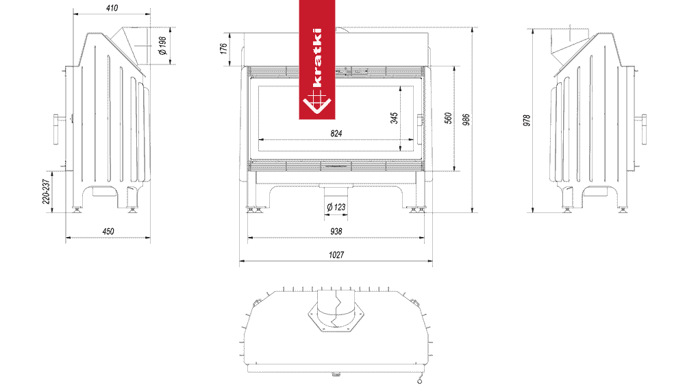 Wykonany z żeliwa, wyjmowany ruszt ułatwia utrzymanie kominka w czystości.