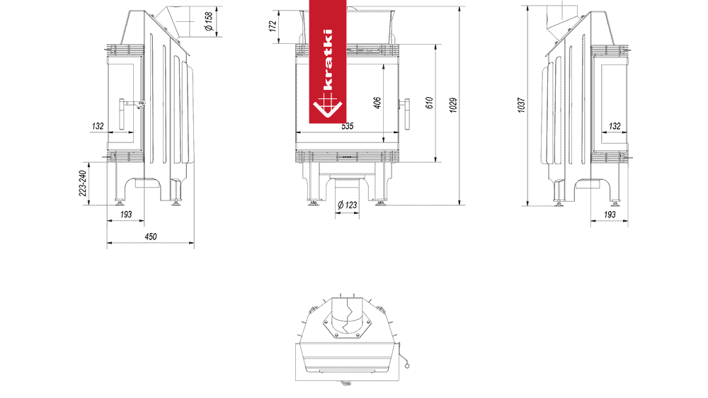 Kominek powietrzny stalowy KRATKI BLANKA lewy prawy BS 8 kW Ø 160