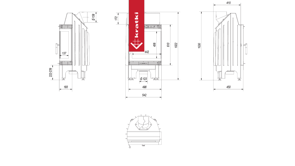 Kominek powietrzny stalowy KRATKI BLANKA prawy BS 8 kW Ø 160