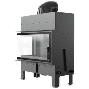 Kominek powietrzny stalowy KRATKI FLOKI L lewy 12 kW Ø 200 czarne wyłożenie z domykaniem