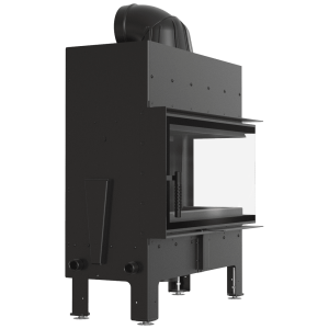 Przeszklenie z dwóch stron zwiększa wizję ognia i doskonale wpisuje się w stylistykę nowoczesnych wnętrz. Tego typu kominek jest często wybierany w przypadku otwartych pomieszczeń, w których łączone są różne przestrzenie, np. salon z jadalnią.