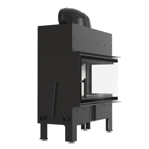 Przeszklenie z dwóch stron zwiększa wizję ognia i doskonale wpisuje się w stylistykę nowoczesnych wnętrz. Tego typu kominek jest często wybierany w przypadku otwartych pomieszczeń, w których łączone są różne przestrzenie, np. salon z jadalnią.
