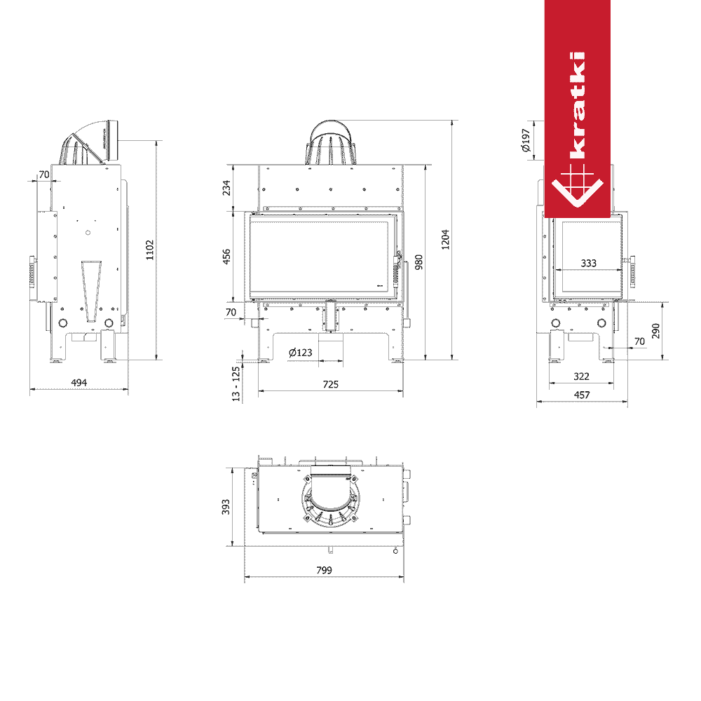 Kominek stalowy FLOKI KRATKI o mocy 10kW. Zakres mocy grzewczej to 7-13kW, co oznacza, że kominek ogrzeje powierzchnię do 130m2. Kominek na drewno spełnia kryteria EKOPROJEKTU, BImSchV 2, posiada dolot powietrza z zewnątrz fi 125, zatem może być zamontowany w domach z rekuperacją. Klasa energetyczna: A+. Linia KRATKI PRO to gwarancja jakości, potwierdzona 10 letnią gwarancją na urządzenie.