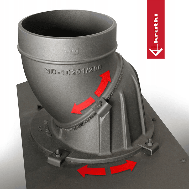 Kominek posiada ruchomy wylot spalin 360°, dzięki czemu łatwiej jest go dopasować do instalacji kominowej.