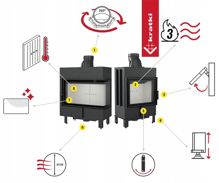 Seria KRATKI PRO to produkty z myślą o bardziej wymagających Klientach. Powstały z myślą o domach energooszczędnych i pasywnych. Dzięki szczelnej komorze spalania i możliwości doprowadzenia powietrza z zewnątrz, kominka te idealnie współpracują z systemami rekuperacji (wentylacji mechanicznej), co w standardowych, tańszych modelach nie zawsze jest tak oczywiste.