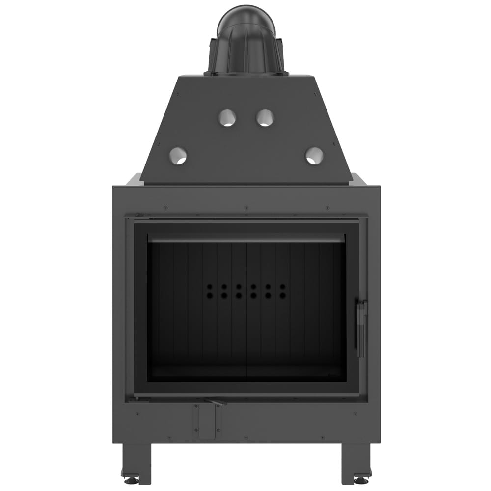 Pogłębiona komora spalania chroni przed rozsypywaniem się popiołu, co ułatwia uzupełnianie opału i utrzymanie czystości wokół kominka.