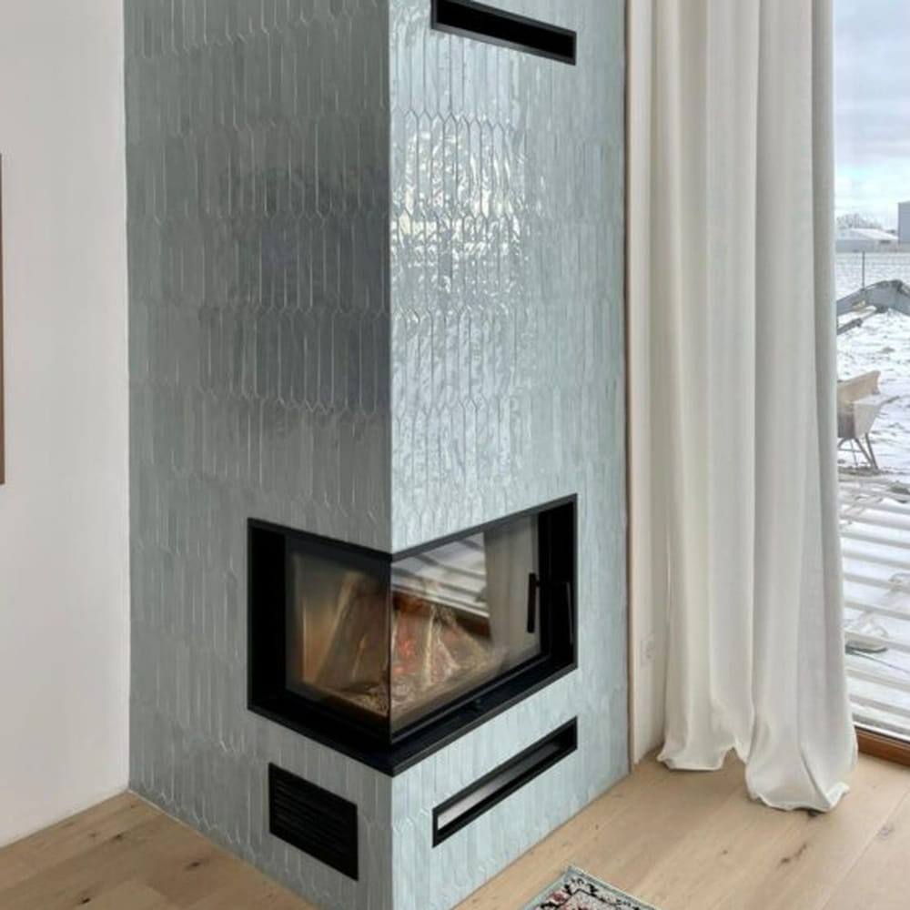 Przeszklenie z dwóch stron zwiększa wizję ognia i doskonale wpisuje się w stylistykę nowoczesnych wnętrz. Tego typu kominek jest często wybierany w przypadku otwartych pomieszczeń, w których łączone są różne przestrzenie, np. salon z jadalnią.