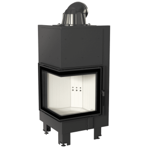 Przeszklenie z dwóch stron zwiększa wizję ognia i doskonale wpisuje się w stylistykę nowoczesnych wnętrz. Tego typu kominek jest często wybierany w przypadku otwartych pomieszczeń, w których łączone są różne przestrzenie, np. salon z jadalnią.