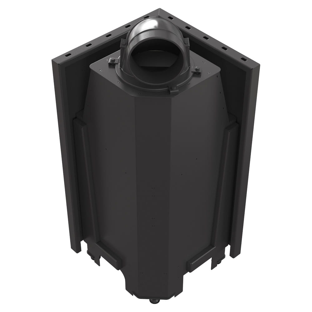 Pogłębiona komora spalania chroni przed rozsypywaniem się popiołu, co ułatwia uzupełnianie opału i utrzymanie czystości wokół kominka.