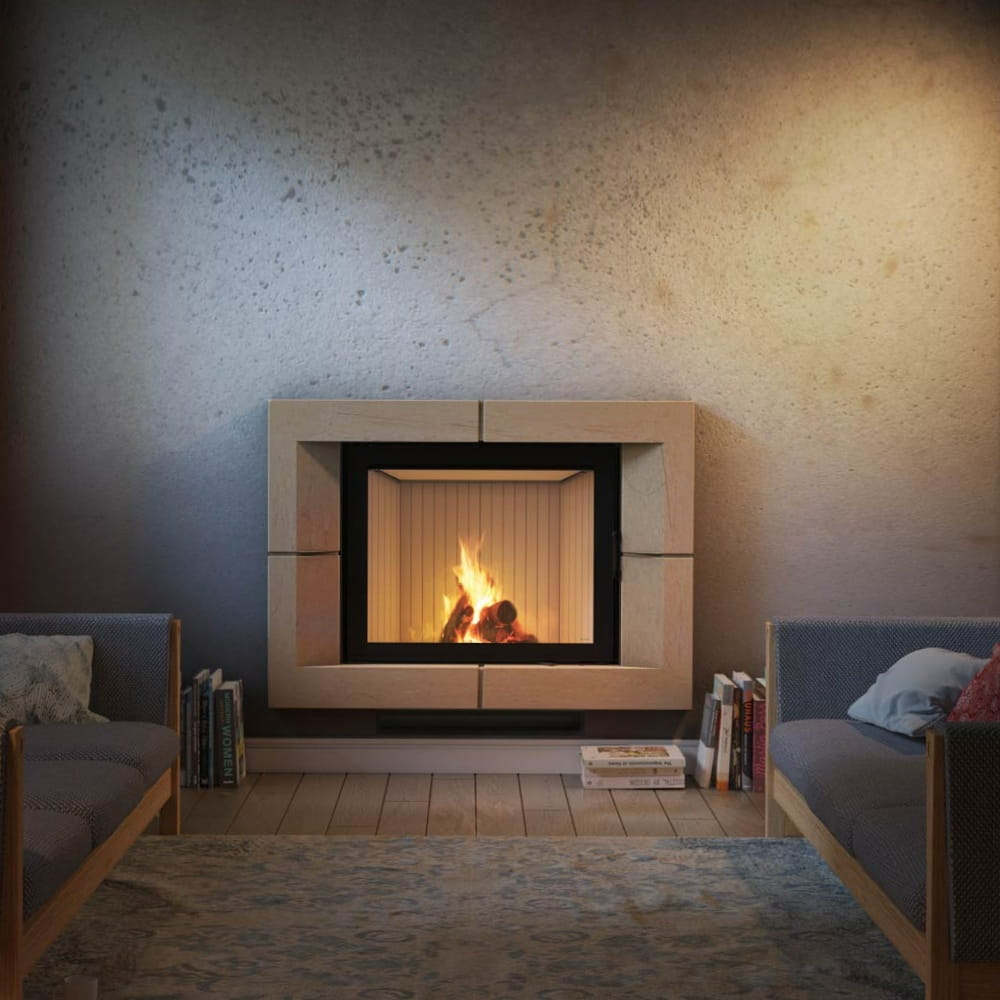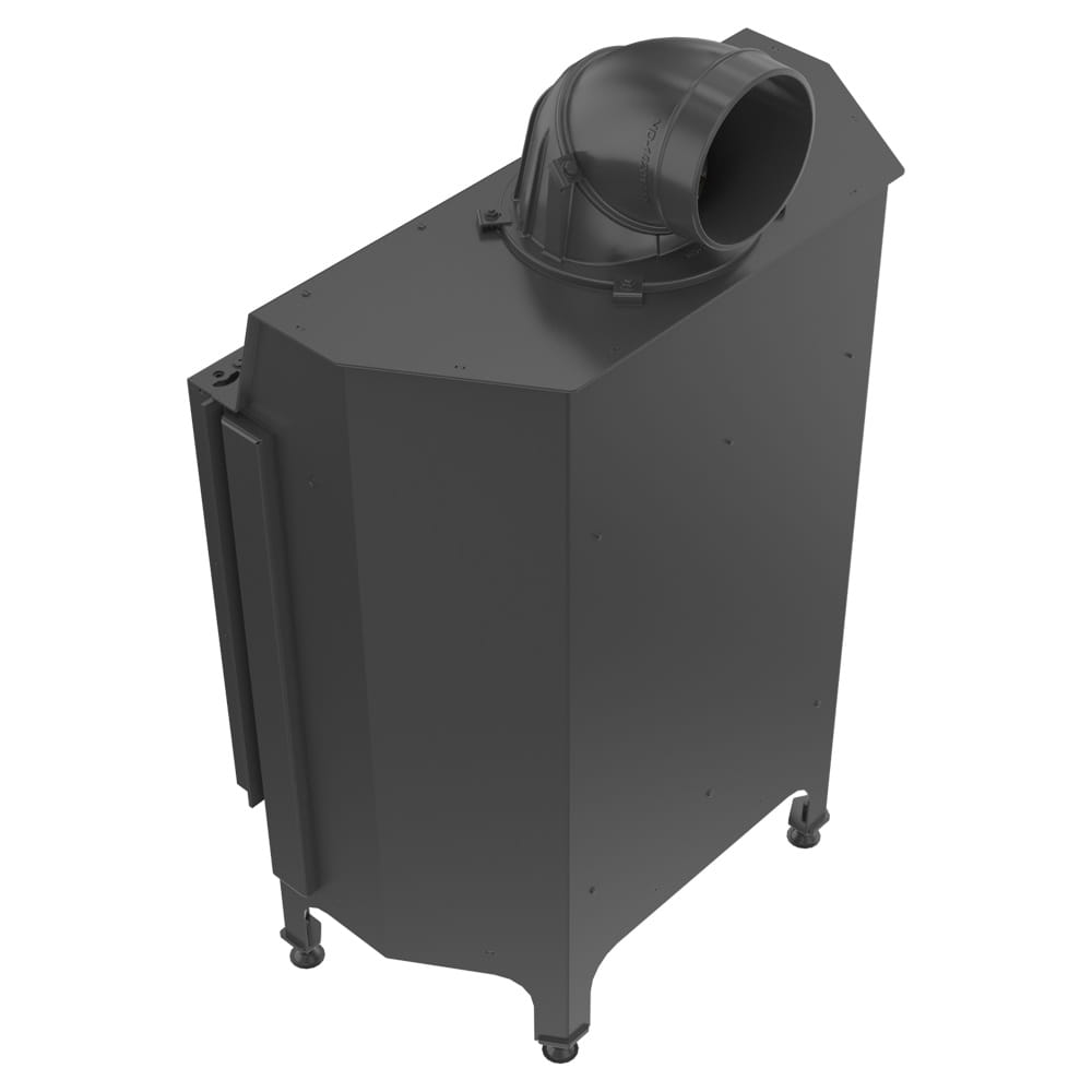 Pogłębiona komora spalania chroni przed rozsypywaniem się popiołu, co ułatwia uzupełnianie opału i utrzymanie czystości wokół kominka.