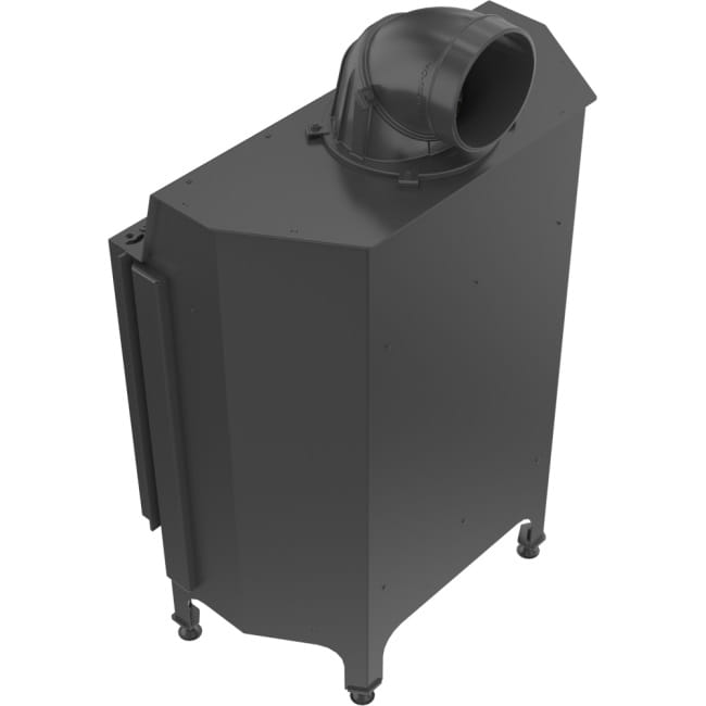 Wkład posiada wbudowany króciec dolotu powietrza fi 125mm, co pozwala dostarczyć powietrze do spalania z zewnątrz pomieszczenia. Szczególnie istotne w domach z rekuperacją. Jego regulacja odbywa się za pomocą przepustnicy ustawianej jednym regulatorem znajdującą się poniżej drzwiczek, co wyklucza błędy w niewłaściwym użytkowaniu. Cały mechanizm działa bardzo cicho i bezawaryjnie.
