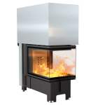 Szyba umieszczona z 3 stron kominka maksymalnie zwiększa wizję ognia i nadaje formie nowoczesności. Tego typu kominek jest często wybierany w przypadku otwartych pomieszczeń, w których łączone są różne przestrzenie, np. salon z jadalnią.