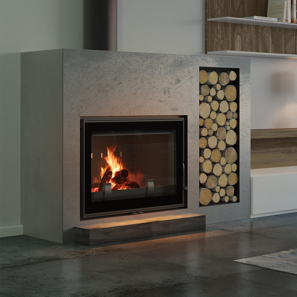 Dekoracyjna szyba, wytrzymująca temperaturę do 660°C, która nadaje kominku nowoczesny i elegancki wygląd oraz optycznie powiększa jego front.
