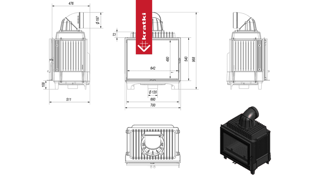 Kominek wykonany jest z żeliwa. Ścianki paleniska o minimalnej grubości 8mm zapewniają solidność konstrukcji, odporność na uszkodzenia oraz długotrwałe utrzymanie ciepła.