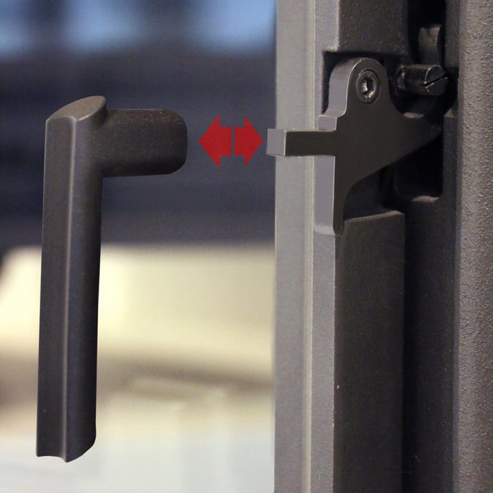 Prosta klamka, którą można zdjąć podczas palenia, gwarantuje, że nie nagrzeje się i możemy użyć zimnej klamki przy dokładaniu drewna.