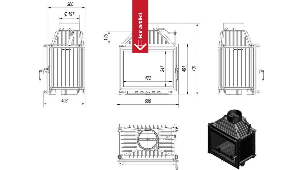 Kominek powietrzny żeliwny KRATKI MAJA 8 kW Ø 200 z domykaniem