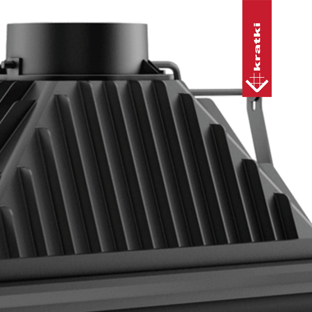 Kominek wykonany jest z żeliwa. Ścianki paleniska o minimalnej grubości 8mm zapewniają solidność konstrukcji, odporność na uszkodzenia oraz długotrwałe utrzymanie ciepła.