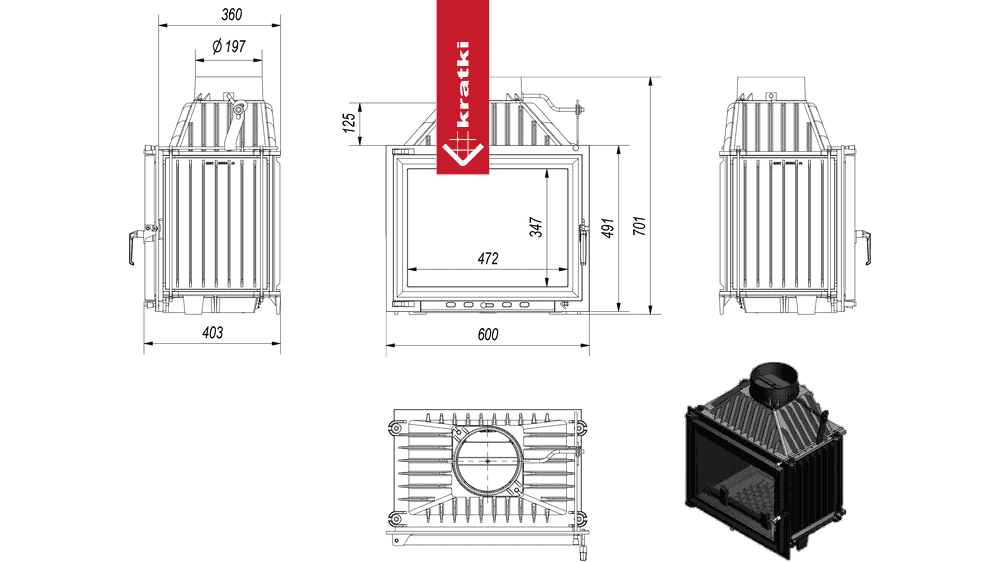 Kominek powietrzny żeliwny KRATKI MAJA 8 kW Ø 200