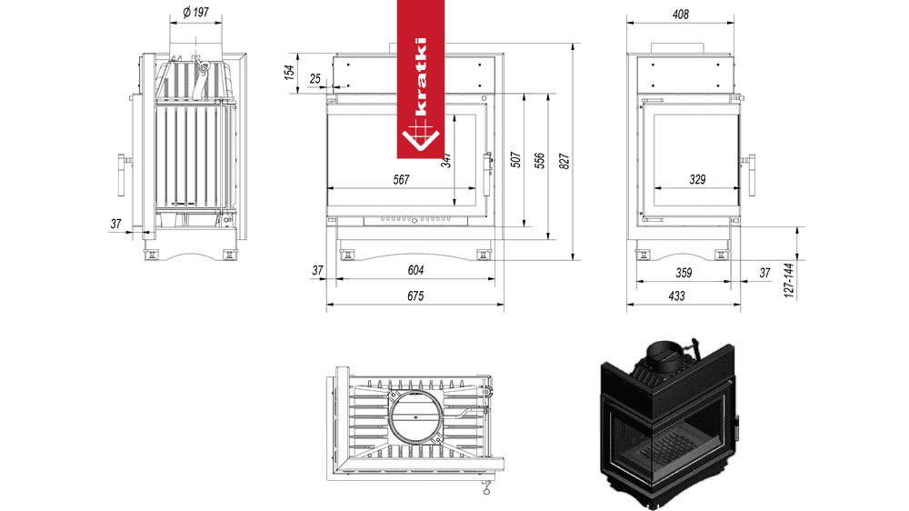 Korpus kominka wykonany jest z żeliwa w połączeniu ze stalowym frontem. Ścianki paleniska o minimalnej grubości 8mm zapewniają solidność konstrukcji, odporność na uszkodzenia oraz długotrwałe utrzymanie ciepła.