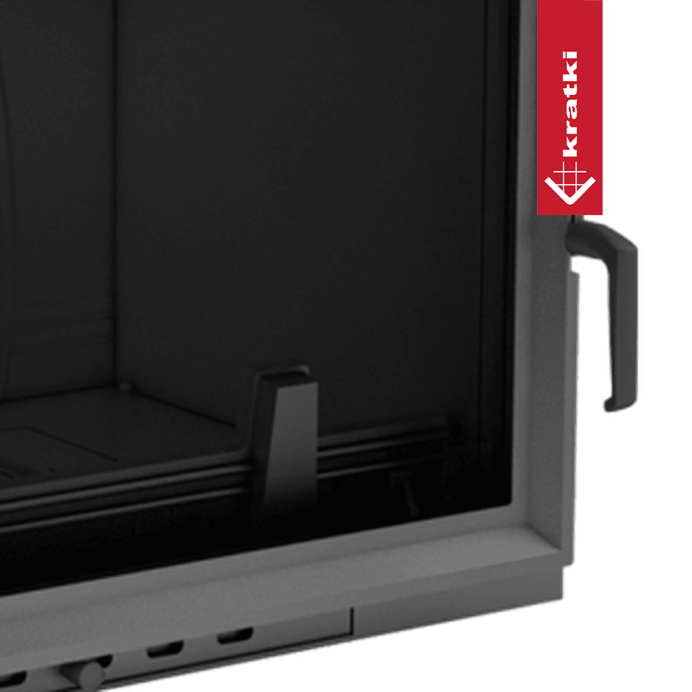 Prosta klamka, którą można zdjąć podczas palenia, gwarantuje, że nie nagrzeje się i możemy użyć zimnej klamki przy dokładaniu drewna.