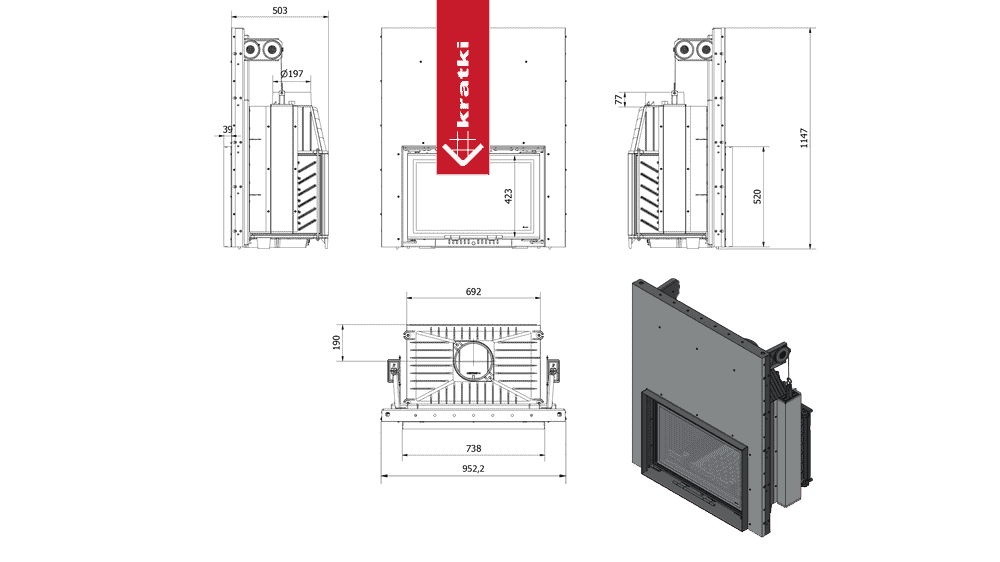 Kominek powietrzny żeliwny KRATKI OLIWIA 16 kW Ø 200 gilotyna