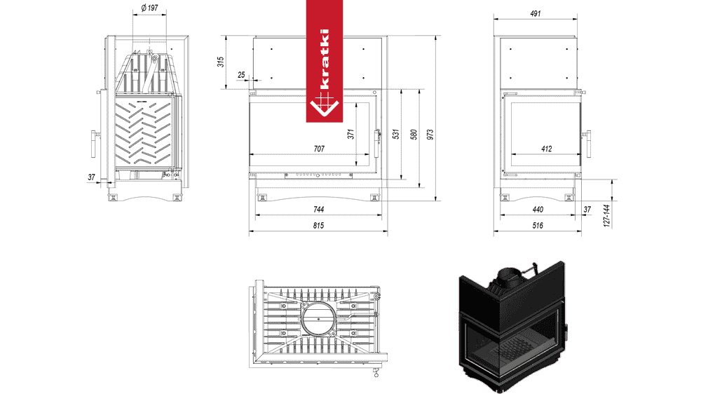 Korpus kominka wykonany jest z żeliwa w połączeniu ze stalowym frontem. Ścianki paleniska o minimalnej grubości 8mm zapewniają solidność konstrukcji, odporność na uszkodzenia oraz długotrwałe utrzymanie ciepła.