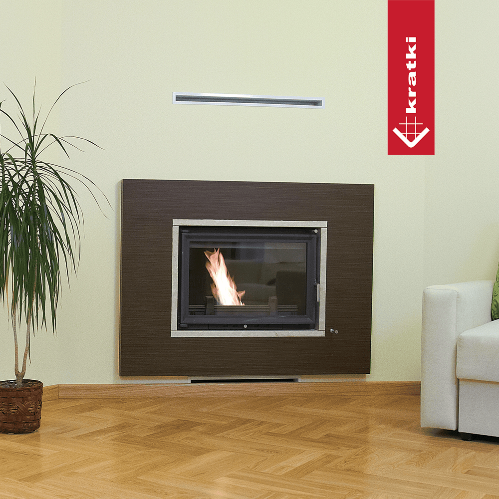 Wkład posiada możliwość zamontowania króćca dolotu powietrza w opcji. Możemy odpowiednimi elementami połączyć powietrze doprowadzone w podłodze. Szczególnie istotne w domach z rekuperacją.