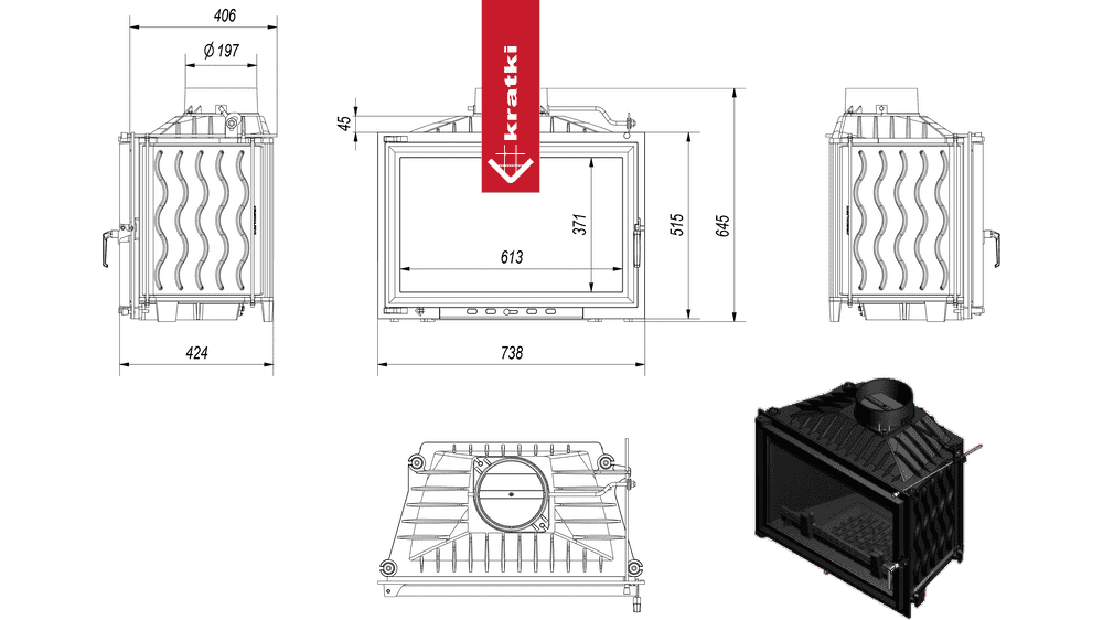 Wykonany z żeliwa, wyjmowany ruszt ułatwia utrzymanie kominka w czystości.