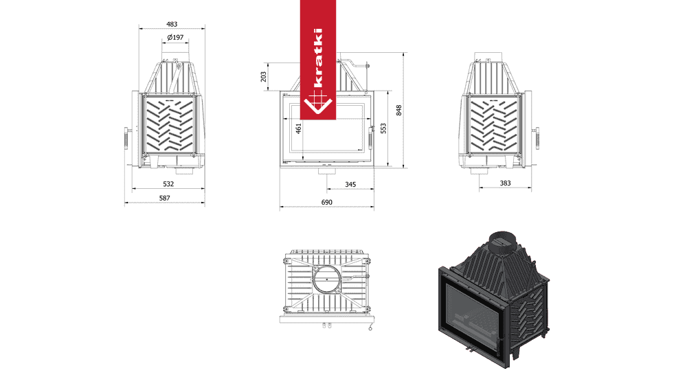 Kominek powietrzny żeliwny KRATKI ZOSIA DECO 12kW Ø 200
