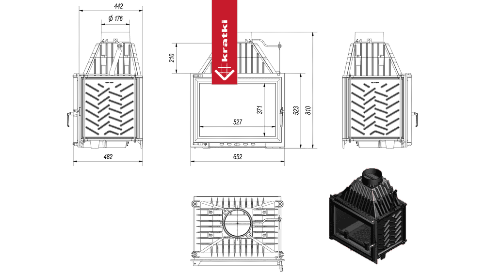 Kominek wykonany jest z żeliwa. Ścianki paleniska o minimalnej grubości 8mm zapewniają solidność konstrukcji, odporność na uszkodzenia oraz długotrwałe utrzymanie ciepła.