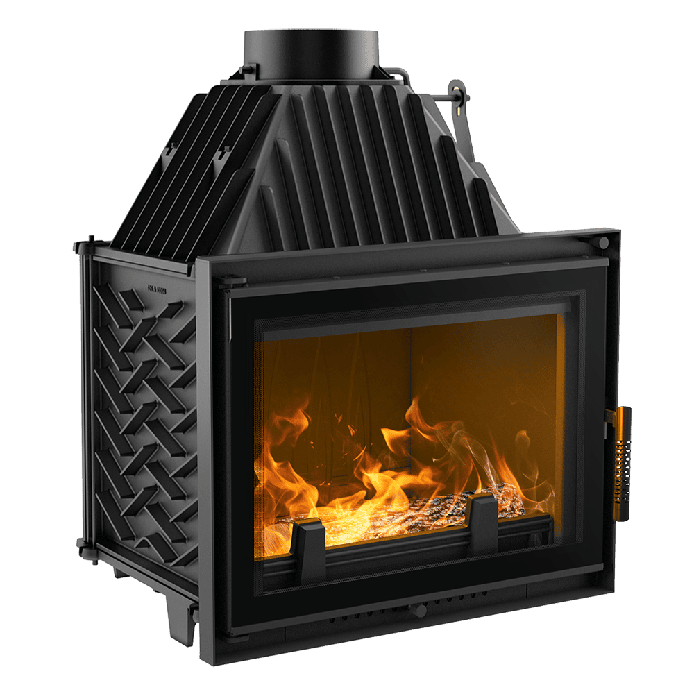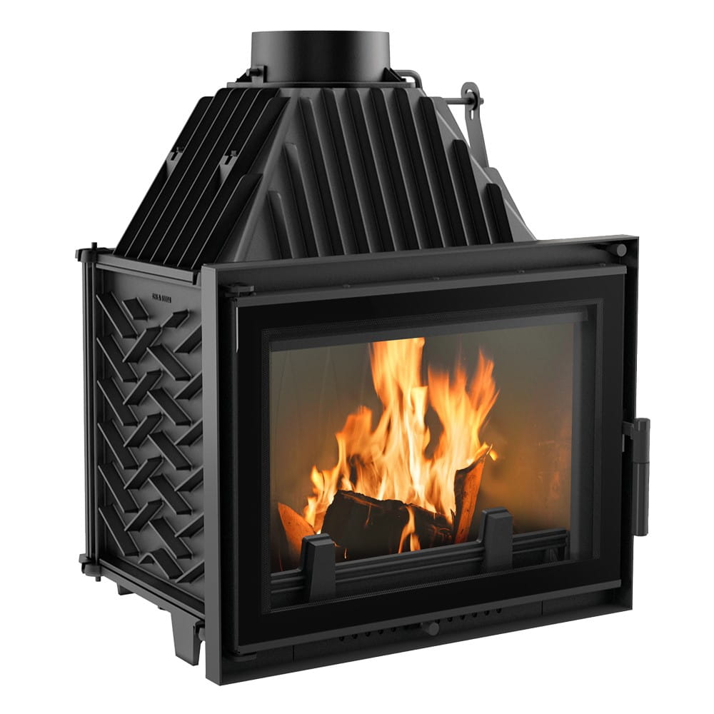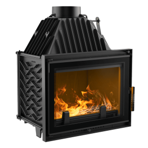 Kominek wykonany jest z żeliwa. Ścianki paleniska o minimalnej grubości 8mm zapewniają solidność konstrukcji, odporność na uszkodzenia oraz długotrwałe utrzymanie ciepła.