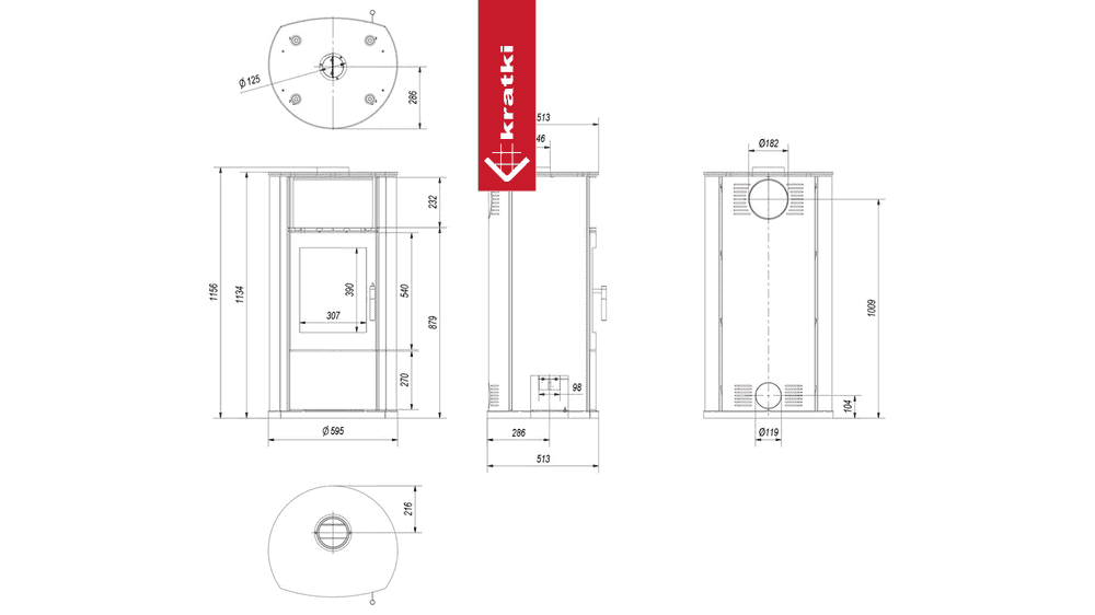 Kominek wolnostojący KRATKI EPSILON Ø 150 8 kW z domykaniem