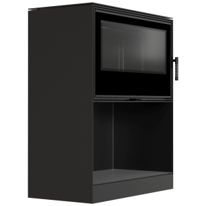 Kominek wolnostojący KRATKI KARI 95 Ø 180 14 kW wnęka na drewno czarne wyłożenie z domykaniem