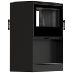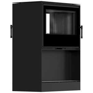 Kominek wolnostojący tunelowy KRATKI KARI 80 12 kW Ø 180 z półką na drewno, czarny termotec