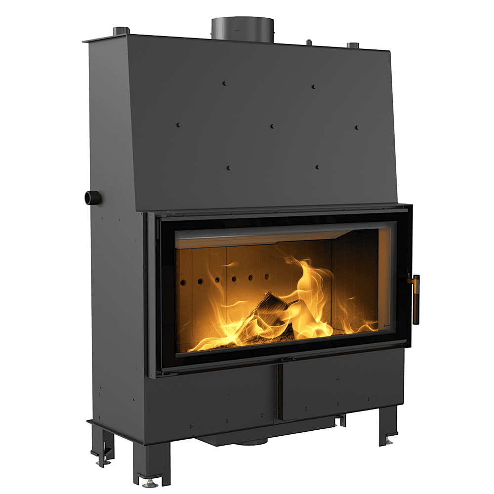 Pogłębiona komora spalania chroni przed rozsypywaniem się popiołu, co ułatwia uzupełnianie opału i utrzymanie czystości wokół kominka.