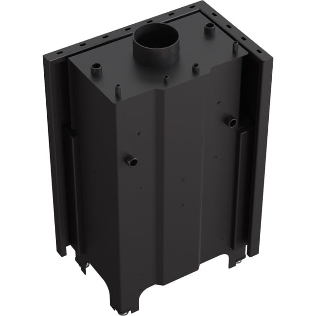 Specjalny zespół wodny składający się z płaszcza wodnego oraz poziomo ułożonych płomieniówek, przez które przepływa woda, pozwala na odebranie ze spalin i przekazanie do systemu grzewczego dużej ilości ciepła, dzięki czemu możliwe jest uzyskanie wysokiej sprawności energetycznej wkładu. Dodatkowo kominek posiada wbudowaną wężownicę, zabezpieczającą go przed przegrzaniem. Ponadto korpus płaszcza wodnego wzmocniony jest szpilkami. Króciec wejścia/wyjścia do układu - 1 cal, a do wężownicy ½ cala.