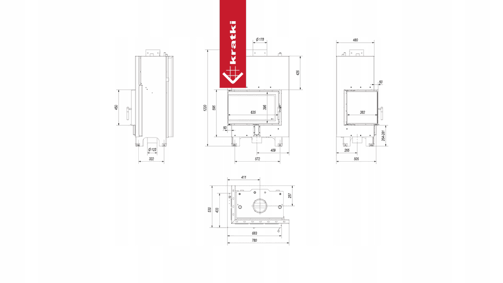 Kominek z płaszczem wodnym KRATKI MBM lewy 12 kW Ø 180 z domykaniem
