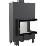 Przeszklenie z dwóch stron zwiększa wizję ognia i doskonale wpisuje się w stylistykę nowoczesnych wnętrz. Tego typu kominek jest często wybierany w przypadku otwartych pomieszczeń, w których łączone są różne przestrzenie, np. salon z jadalnią.